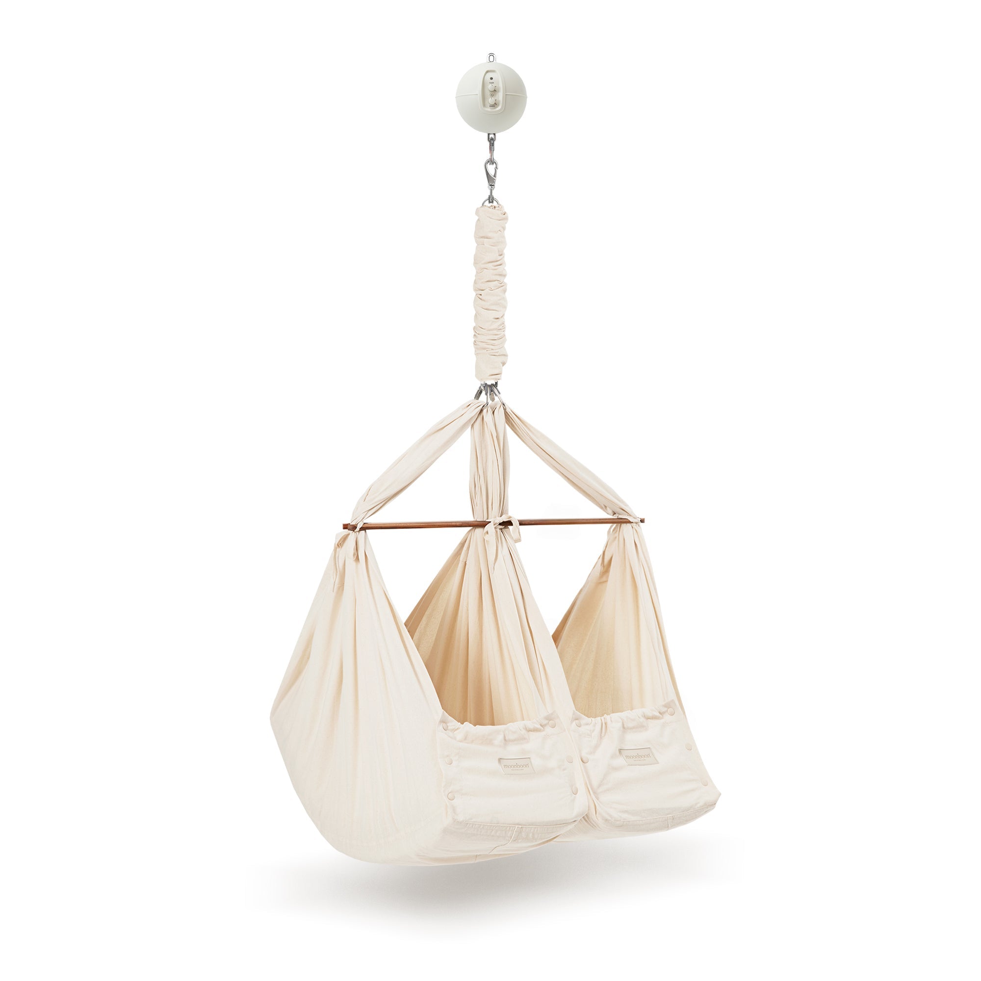 Dubbel zoveel liefde, maar ook dubbel zoveel armen nodig om de kleintjes tot rust te brengen. De babyhangmat voor tweelingen is de perfecte helpende hand om jouw tweeling zachtjes in slaap te wiegen in een knusse en veilige ruimte.