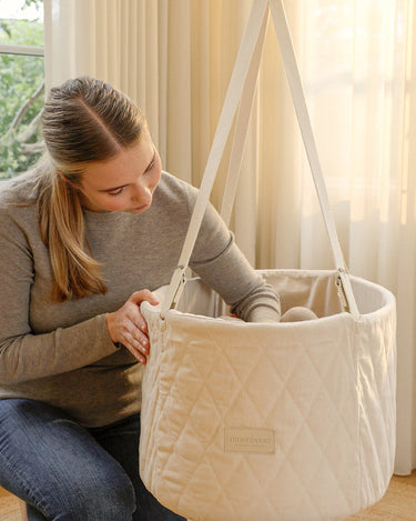3. Langzaam beginnen: Het schommelen moet voorzichtig en langzaam worden ingezet - handmatig of met onze Moonboon Motor. Je kunt het tempo en de duur van het wiegen geleidelijk opvoeren naarmate je baby eraan gewend raakt. Je zult al snel leren wat voor jou werkt.