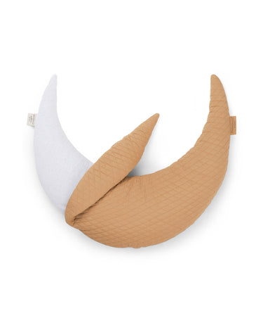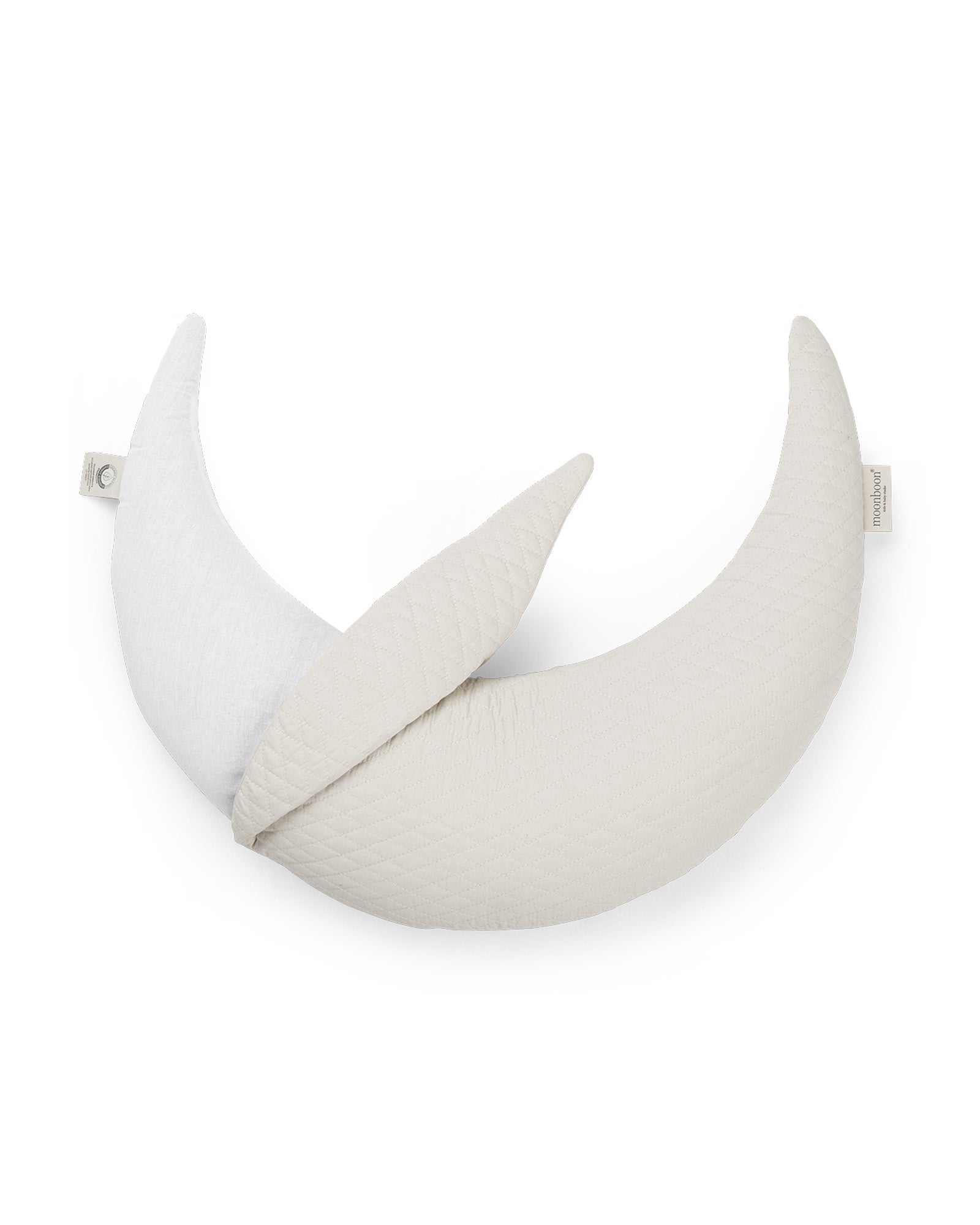 Of je je Maanvormige Voedingskussen nu gebruikt om te voeden, in te luieren of zelfs in de kinderwagen, je hoeft je geen zorgen te maken over morsen of vlekken met onze superzachte, gewatteerde hoezen van 100% biologisch katoen - nu apart verkrijgbaar.