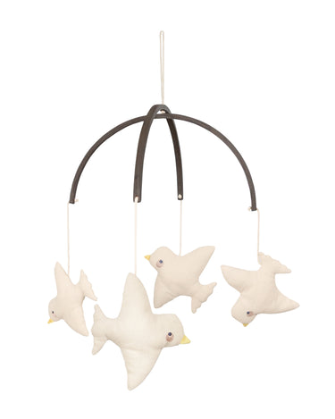 De mobiel is gemaakt van 100% biologisch katoen en is ontworpen voor babybedjes, wiegjes en voor in de box. De mobiel creëert een serene sfeer en brengt je baby zachtjes in slaap. De delicate beweging en tijdloze charme maken het een essentieel stuk voor het creëren van een dromerige slaapruimte voor je kleintje.