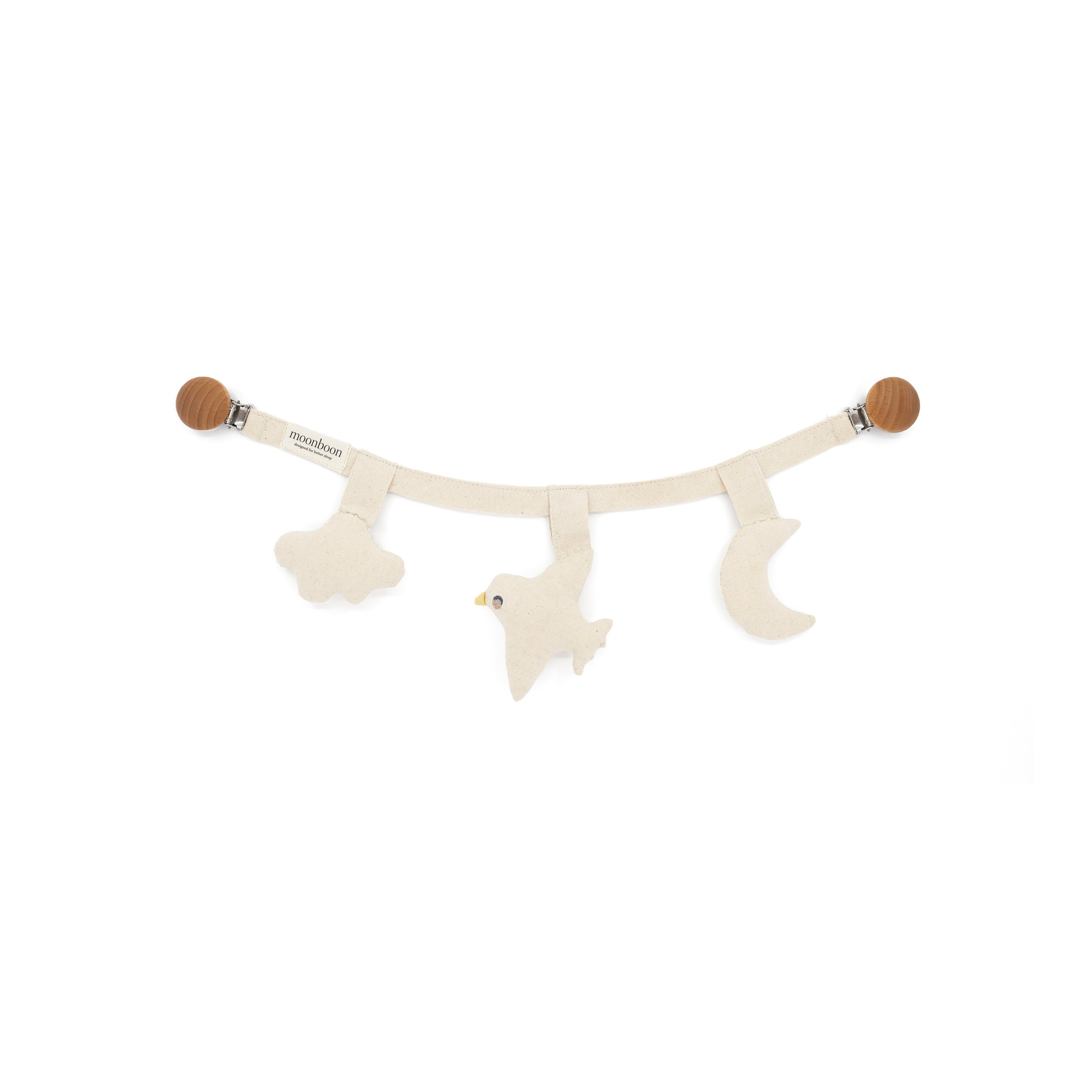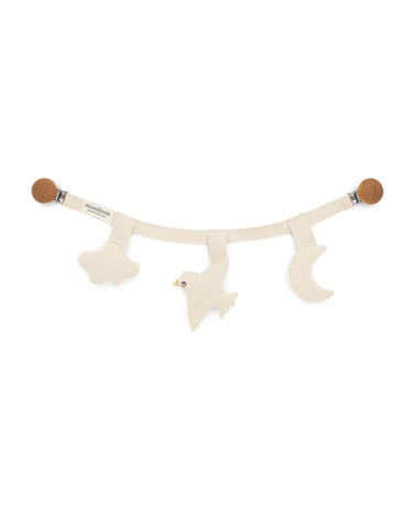 Voeg een vleugje magie toe aan de wereld van je baby met onze veelzijdige ketting, ontworpen om moeiteloos te bevestigen aan je kinderwagen, autostoeltje of babyhangmat.