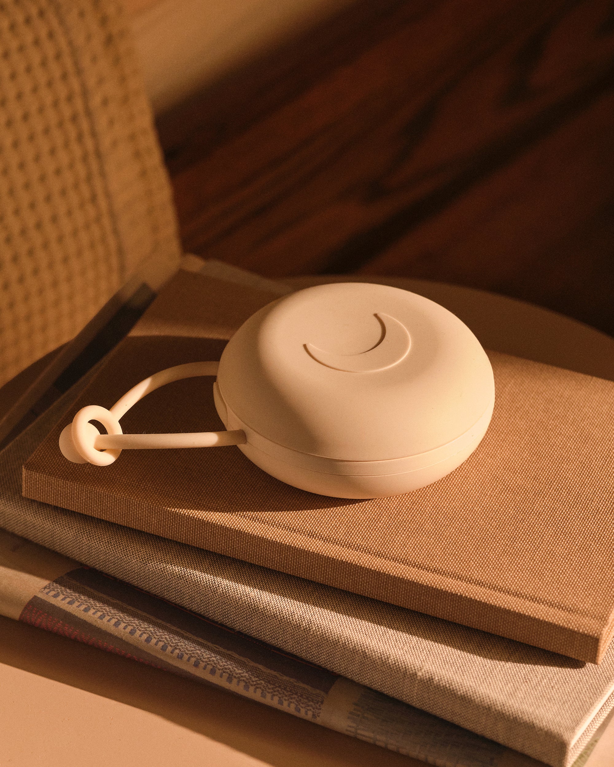 De intuïtieve bediening hoef je alleen maar drie seconden ingedrukt te houden om het apparaat in of uit te schakelen en je kunt tikken om de helderheid aan te passen. Geen gedoe meer met knoppen of timers. Het apparaat is veilig en gemakkelijk mee te nemen van kamer naar kamer en kan met de siliconenband overal worden bevestigd, zodat je het eenvoudig kunt verplaatsen van de voedingsstoel naar het aankleedkussen.